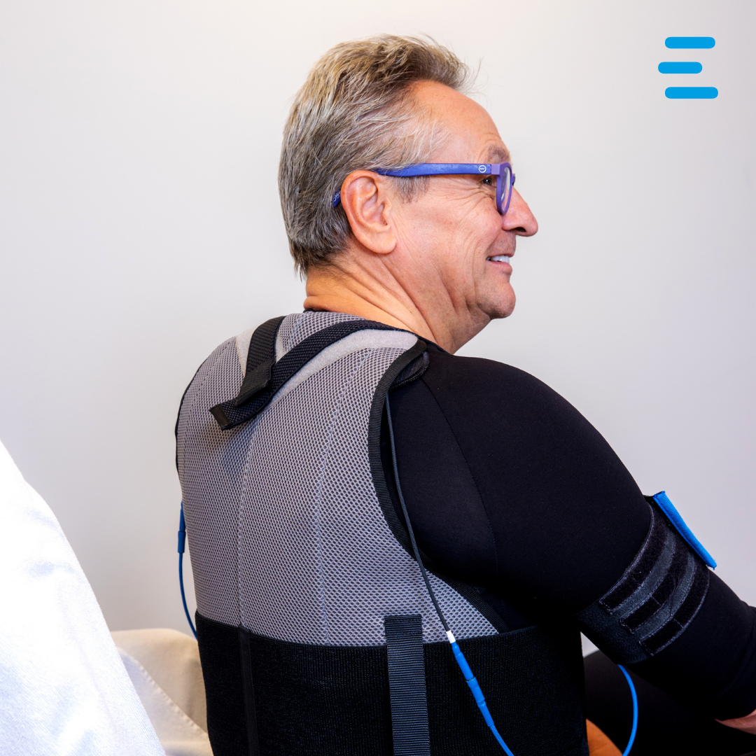 Tijdens de sessie draag je een elektrodenpak dat zachte elektrische impulsen en infrarood combineert. Deze stimulatie verbetert de doorbloeding, vermindert spierspanning en helpt pijnklachten te verlichten zonder je gewrichten te belasten.